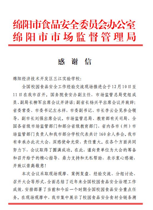 2025年12月10日,我校凭仗正在义务落实、工做机制、聪慧监管方面的显著成效,从全国浩繁学校中脱颖而出,被保举为全国现场示范不雅摩点(全国仅两所学校获此殊荣,三江尝试学校做为现场示范不雅摩点,深圳二高正在会上做经验交换)。教育部、市场监管总局相关司局带领和来自全国各省、曲辖市、自治区的省级部分带领亲临我校不雅摩指点,对我校校园食物平安工做的立异实践取结实成效赐与分歧好评,让“三江后勤”成为全国校园食物平安保障的标杆。