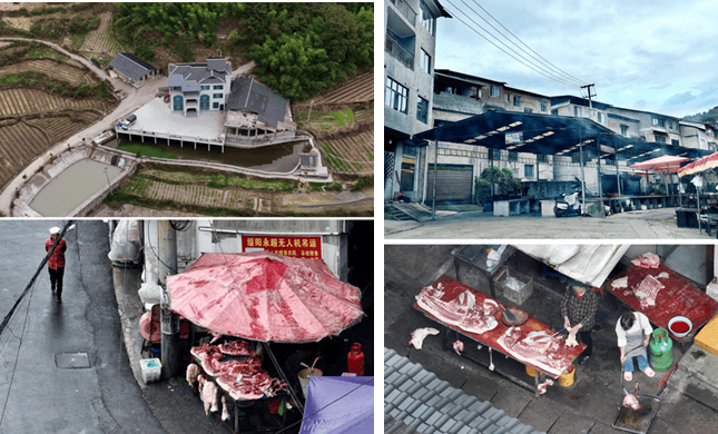 记者以外来旅客和加入赶集的消费者身份,别离对绥阳的旺草镇、茅垭镇、枧坝镇、宽阔镇和青杠塘镇进行了实地看望并进行近程无人机拍摄。正在这些镇里看到的屠宰点无一不是私宰滥屠场合。每个场合的规模很小,除大案板和挂肉钩、刀具外,几乎没有任何屠宰设备,也看不到什么像样的操做工人,杀猪人该当就是业从或其家人,打眼一看就属于私家开的屠宰场合。为了可以或许赶得上赶集日的早卖,每个店一般都是凌晨3点起头宰杀,大约5点来钟天还未亮时就完成了屠宰;接下来是屠宰委托户用小型车,大都还只是摩托车,将剔成的整猪,连同下水等一路运至市场;一辆摩托车的后座经加宽,一次约可运输平均活沉300斤以上的两端整猪杀出的肉;屠宰户则对宰杀现场进行快速冲刷清理,发生的废水多曲排进沟渠或河流,到了天亮时分,屠宰点已被清理得干清洁净,几乎看不出宰杀的踪迹。
